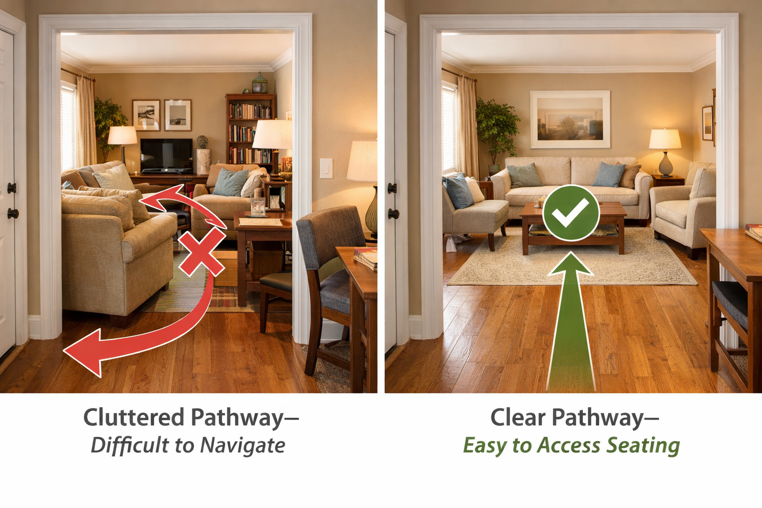 Simple things like having to consider a pathway adds micro-stresses to your home experience. Having clear and obvious paths actually create more ease physiologically.